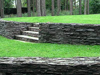 уменьшить крутизну склона:а) желательно разделить склон на горизонтальные уровни-террасы, установив между их краями подпорные стенки и ограничивающие откосы. Ливневые воды могут стать серьезной напастью, если не установить дренажную систему отвода. В случае угрозы потока вод со склона, потребуется установка бетонного отбойника, направляющего приходящую воду по бетонному руслу вниз;