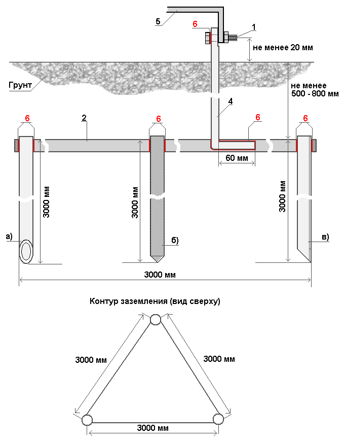 3 — Варианты заземляющих электродов (вертикальные заземлители):